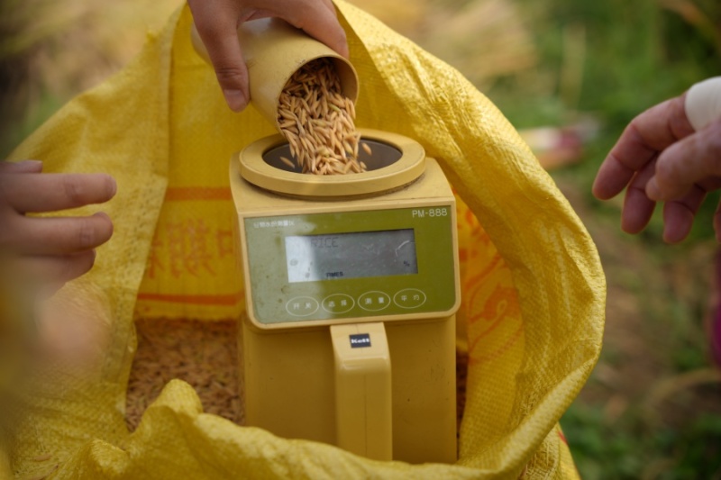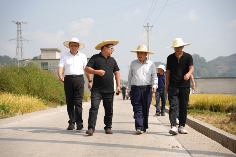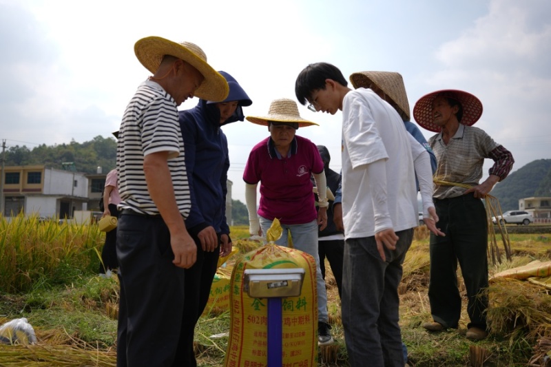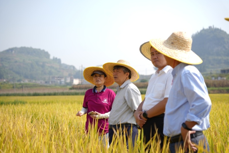“今天我們分成四個組,來進行此次驗收。”校長宋寶安院士在滾滾稻浪前為試驗田驗收進行分組。