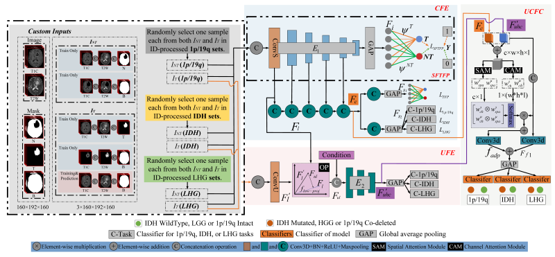 膠質瘤是最常見的原發性腦腫瘤,其精準診斷和個性化治療對患者預后至關重要。盡管深度學習方法已廣泛應用于膠質瘤磁共振圖像分類預測,但現有方法僅支持單一分類任務、依賴腫瘤分割,且缺乏可解釋的影像標志物。如何同時準確預測膠質瘤的組織學分級和分子亞型,并提供可解釋的影像標志物,仍具有重大挑戰。